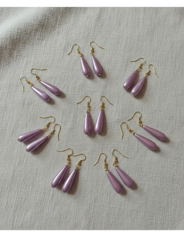 Aros Con Gota 3 Cm Lila Perlado