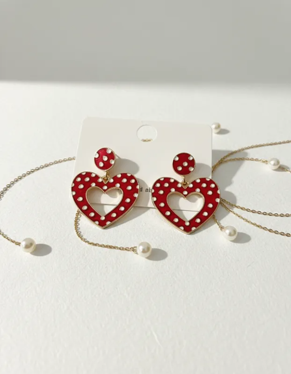 Aros Corazón Rojo a lunares