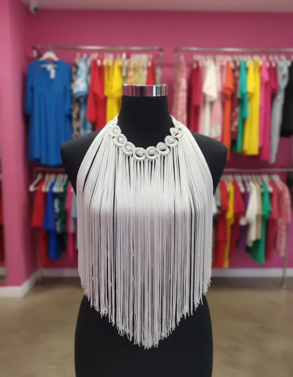 Collar De Flecos De Seda Círculos Blanco