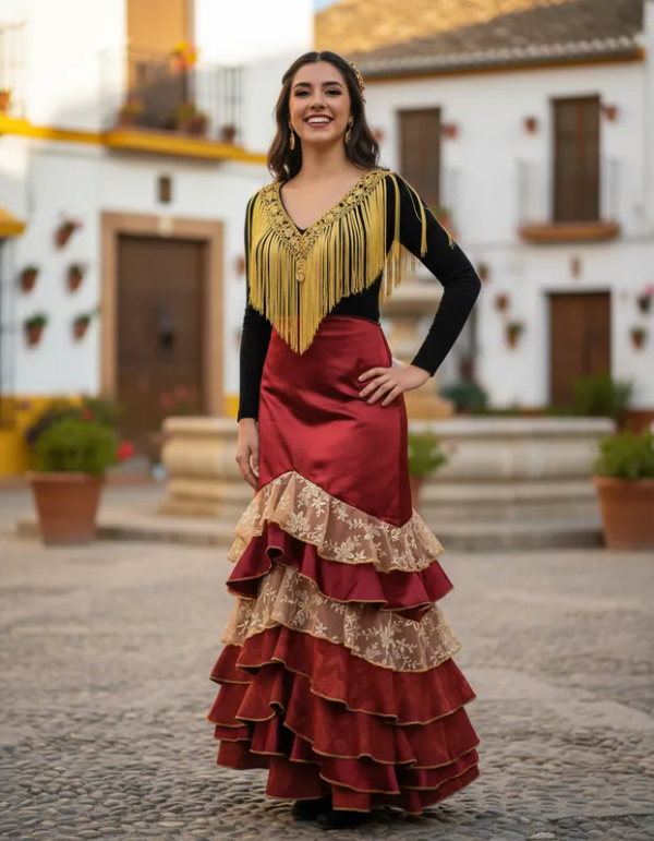 Falda confeccionada en satén, crepe y encaje ( telas no elastizadas)