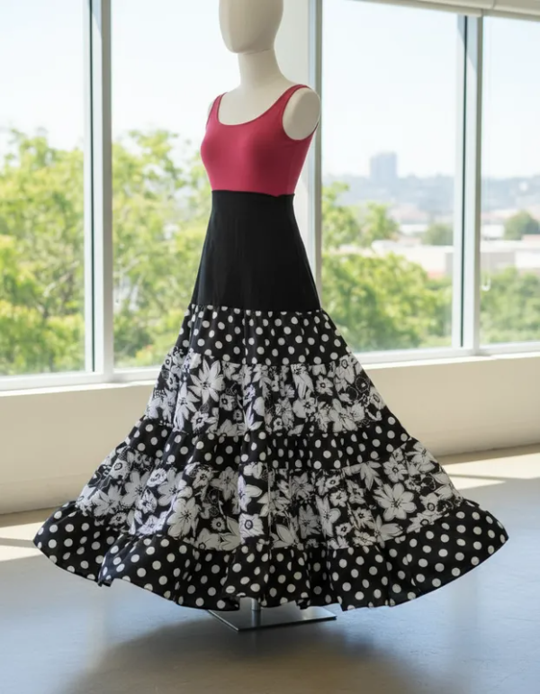 Falda confeccionada cotton fantasía (tela elastizada) y volados de seda