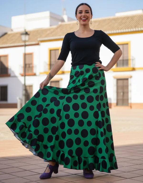Falda Verde con lunares negros - Talle M