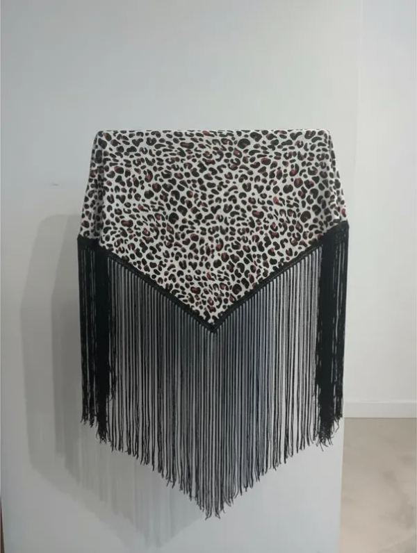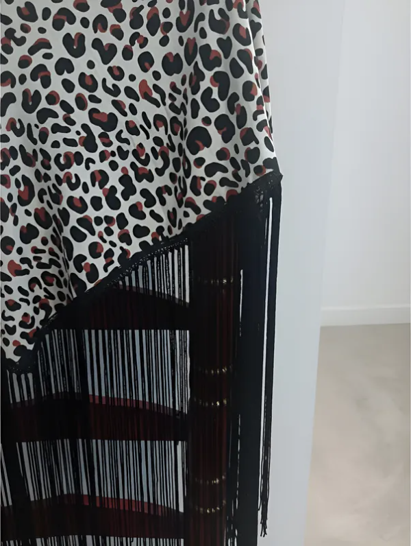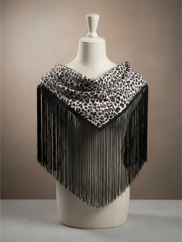 MANTONCITO TRIANGULAR ANIMAL PRINT CON FLECOS DE SEDA