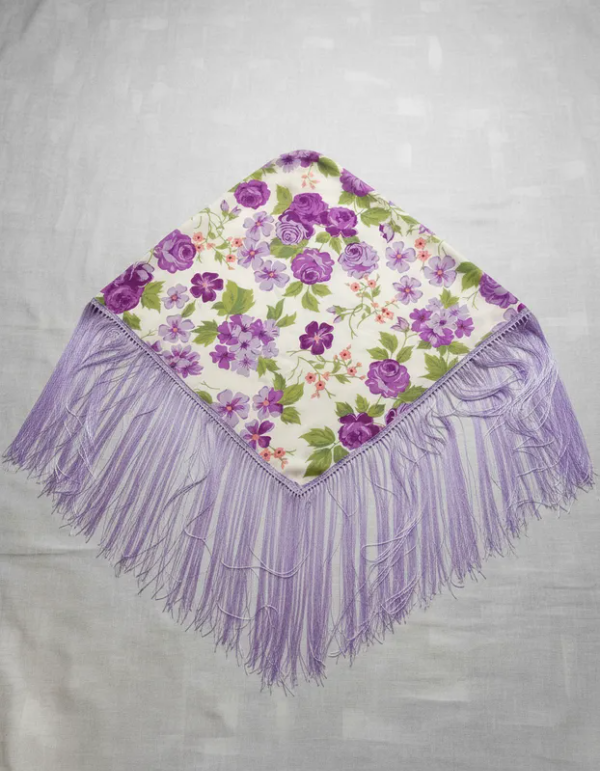 Mantoncillo floreado con flecos de satén
