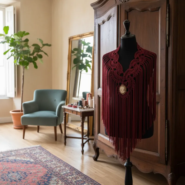 Tira De Flecos De Seda Para Escote Abanicos Bordó PRE VENTA