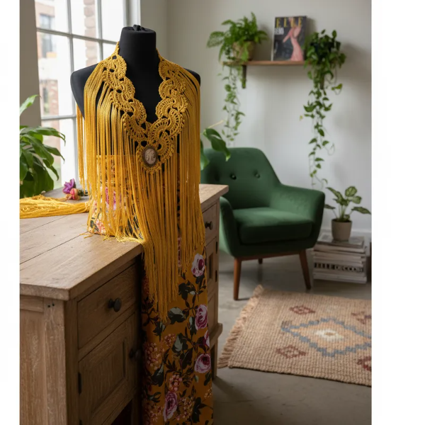 Tira De Flecos De Seda Para Escote Abanicos Dorado