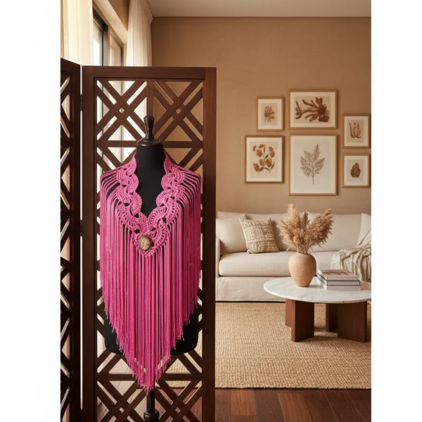 Tira De Flecos De Seda Para Escote Abanicos Fucsia PRE VENTA