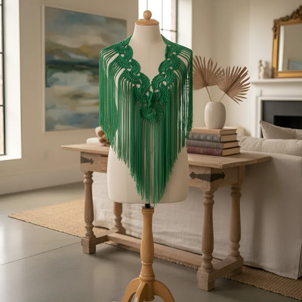 Tira De Flecos De Seda Para Escote Abanicos Verde