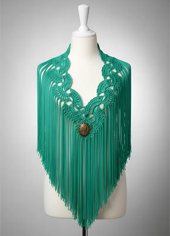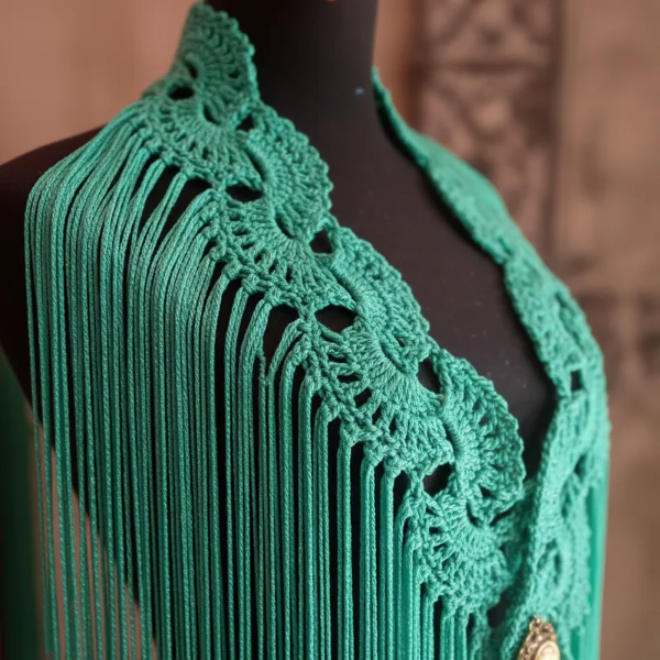 Tira De Flecos De Seda Para Escote Abanicos Verde esmeralda