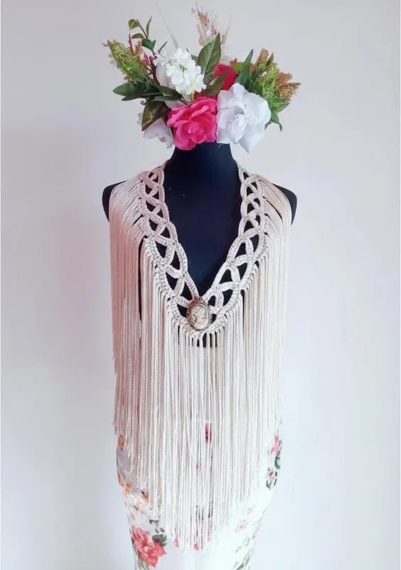 Tira De Flecos De Seda Para Escote Zig Zag Blanco