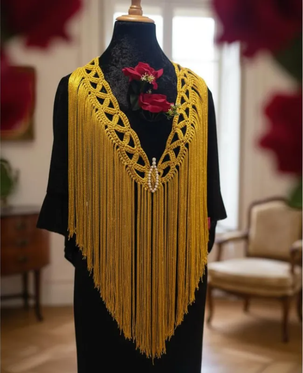 Tira De Flecos De Seda Para Escote Zig Zag Dorado