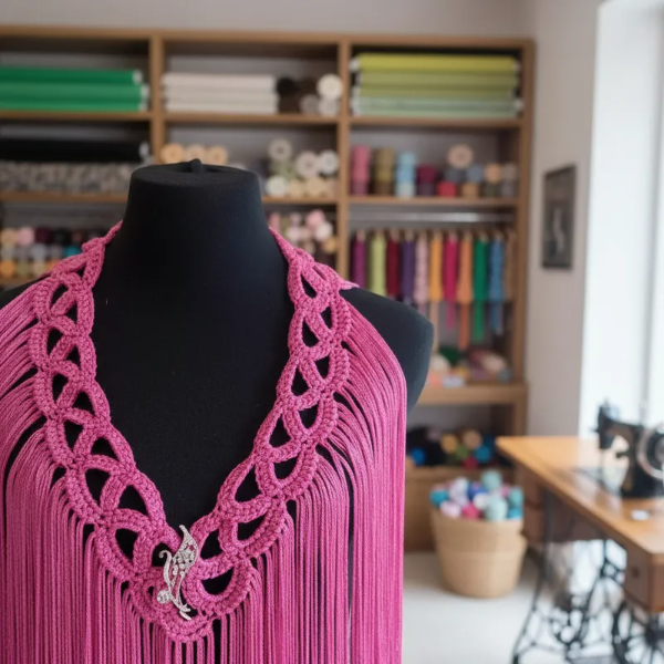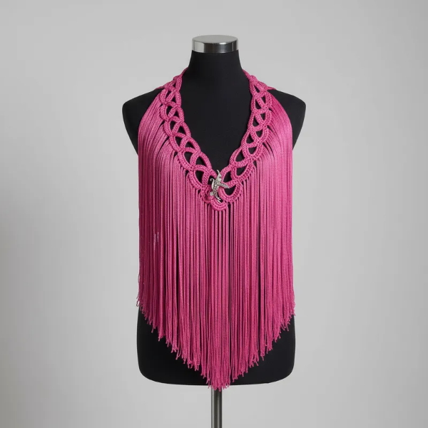 Tira De Flecos De Seda Para Escote Zig Zag Fucsia PRE VENTA