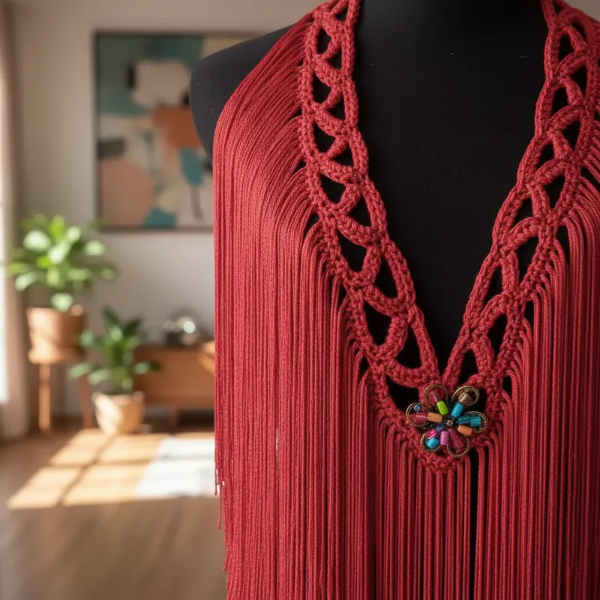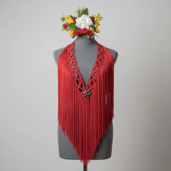 Tira De Flecos De Seda Para Escote Zig Zag Rojo