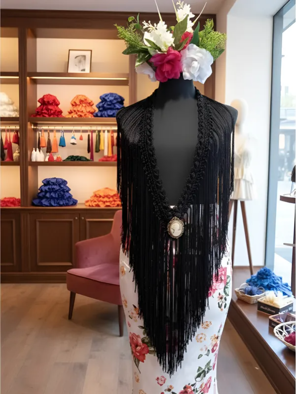 Tira De Flecos Para Escote Recta 100 Cm Negro PRE VENTA